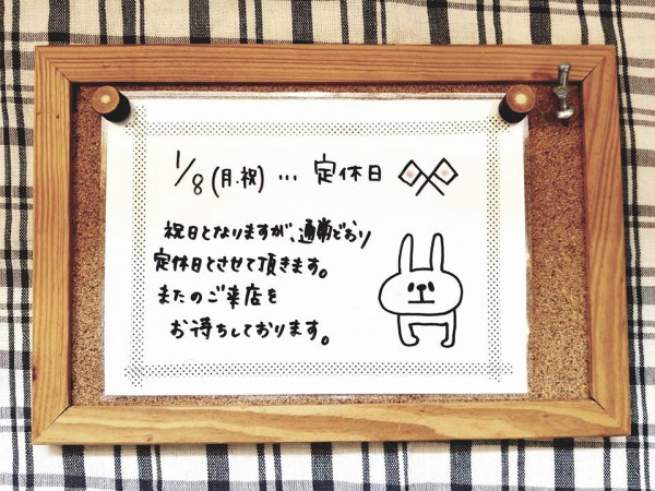 明日1/8(月)は『成人の日』祝日ですが、通常どおり定休日となりますのでご了承下さい(..)
