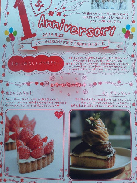 これからもスタッフ一同スイーツ達と共に皆さんに笑顔なっていただく為、頑張って参りますので今後ともルクールをよろしくお願いいたします。