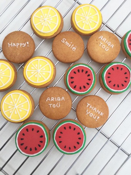 今回は、スイカとレモンの輪切り+メッセージクッキーです。