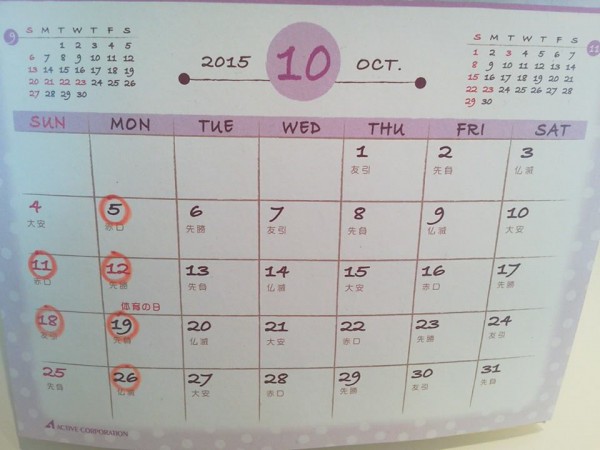 翌日、10/12(祝・月)は“体育の日”で祝日ですが、通常通り定休日となります。