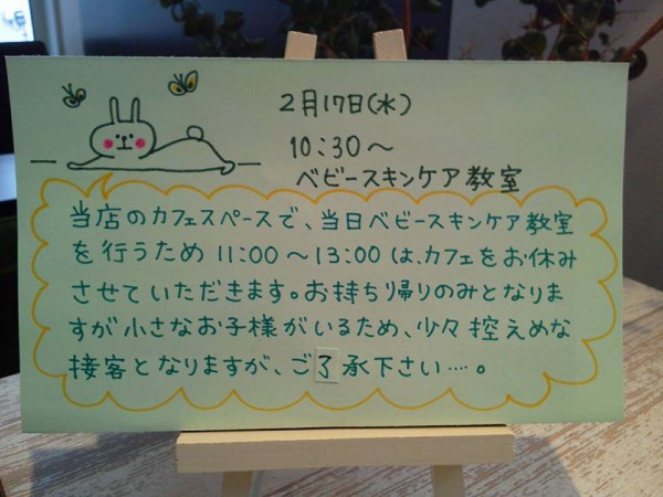 明日2/17(水)【ベビースキンケアの教室】が開かれます。