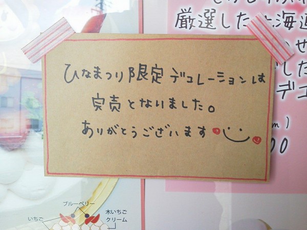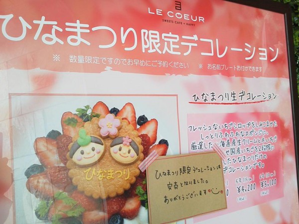 おかけさまで先週末、ひなまつり限定デコレーションのご予約が予定台数に達しました♩♪♬