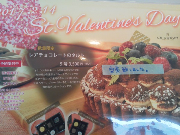 今ほど、、【バレンタイン限定:レアチョコレートのタルトデコレーション】のご予約が予定台数に達しましたので両日もとに、受付を終了させて頂きます。