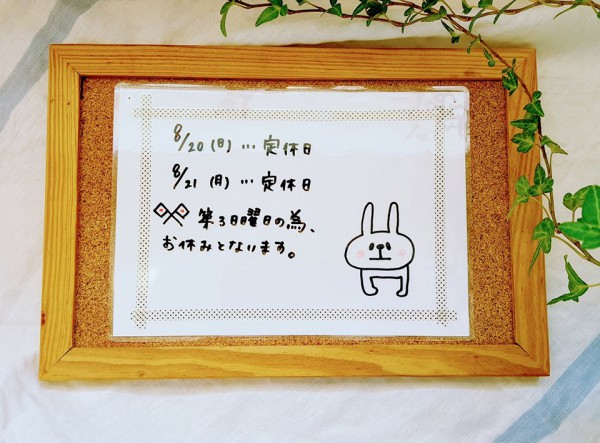 明日8/20(日)・明後日8/21(月)はルクール定休日となります![]()
