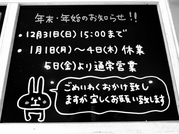 また、12/28(木)から通常どおり営業となりますので、よろしくお願い致します。