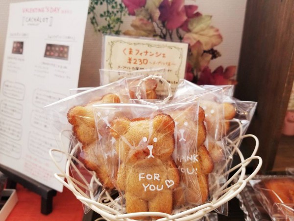 【くまフィナンシェ】230円…メープルの風味と焦がしバターが香ばしいかわいいクマさん型のフィナンシェ。1匹1匹想いを込めて違った手書きのメッセージ入り![]()