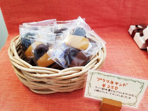 【プラリネサンドクッキー】250円…ナッツの風味の豊かなプラリネペーストを2種類のハート型クッキーでloveサンド![]()