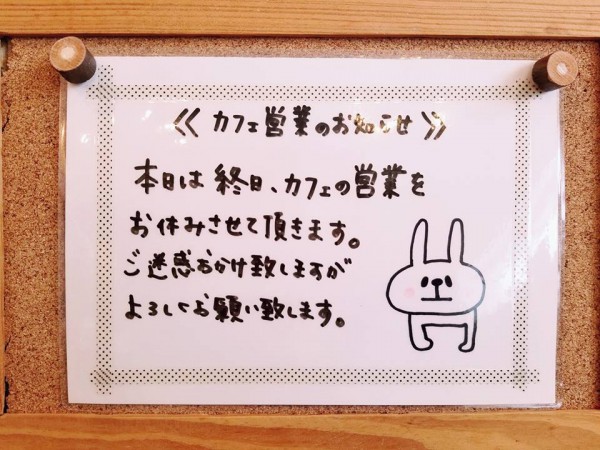 ◎カフェの営業ですが、本日は終日お休みさせて頂きます(;;)