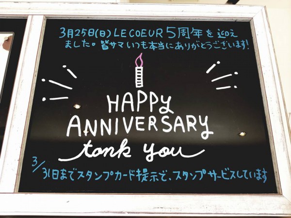 今週3月25日(日)、、ルクールは5周年を迎えます〜!