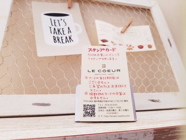また新規のスタンプカードもすぐお作り出来ますので、お気軽にスタッフまでどおぞ