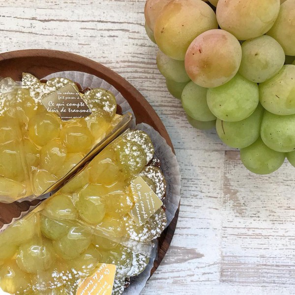 糖度が16度以上ある大谷さんのぶどうは、粒の大きな甘みあるものに仕上がっております。ジューシーで後味スッキリな、シナノスマイルをふんだんに使用したタルトでございます!