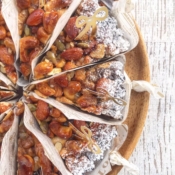 キャラメリゼした、アーモンド,クルミ,カシューナッツ,パンプキンシードをゴロッと贅沢に焼き上げた食べ応えのあるタルト✧