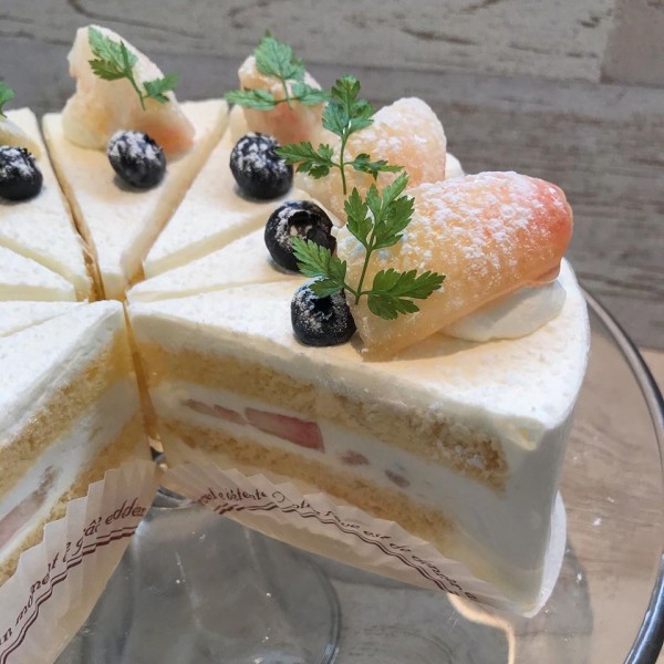 優しい甘さの桃のショートでございます。