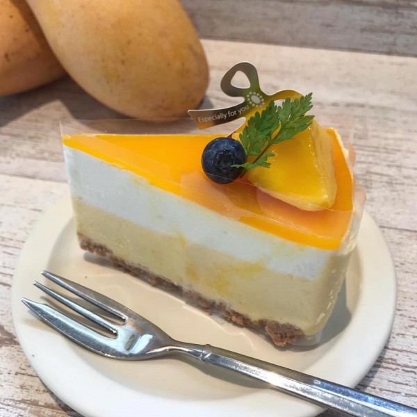 二種類のレアチーズケーキが味わえ、下のサクッと食感のアクセントもあり上には、マンゴーゼリー☆