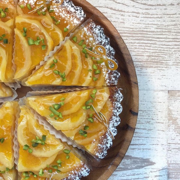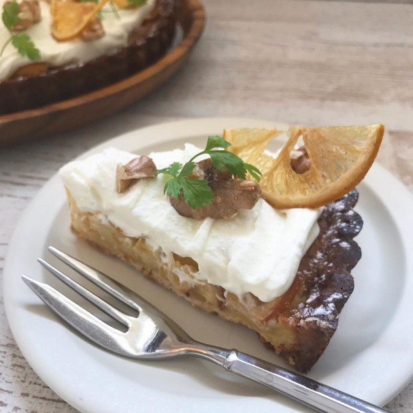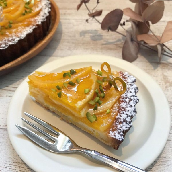 自家製のオレンジのシロップ煮をふんだに敷き詰め焼き込んだタルトです。