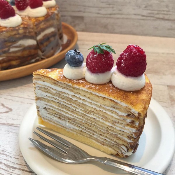 しっとりふんわりなクレープ生地とカスタードと生クリームが何層にもなったクレープケーキです♪