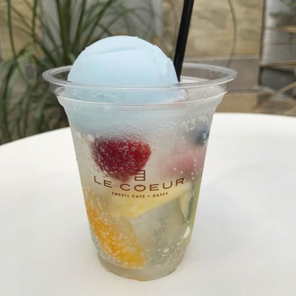 5種類のフルーツが入った フルーツポンチにラムネアイスをトッピング! 見た目も味も楽しめます♪