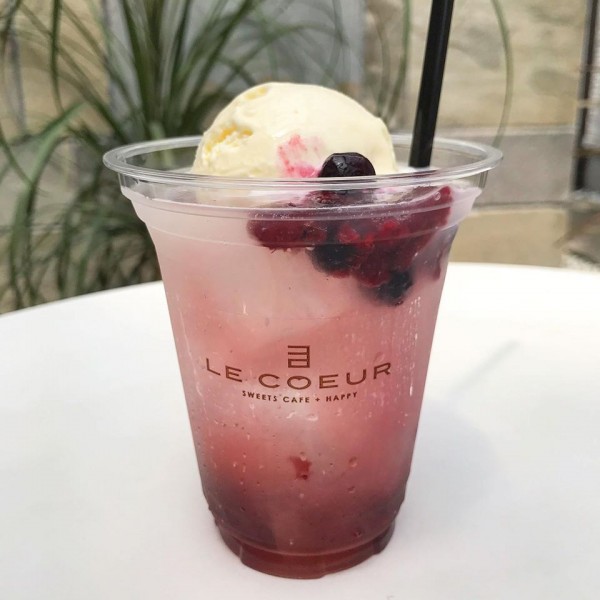 ラズベリーとレモンをブレンドしたダブルの酸味と爽やかな風味のコーディアルシロップに、自家製ラズベリーソースとバニラアイスをトッピング!