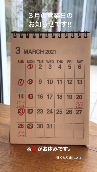 ・営業時間が11:00〜17:00に変わりました。日曜日は、しばらくの間15:00閉店になります。ご来店の際,ご予約の際お気をつけ下さい。