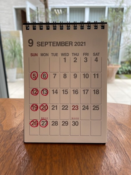 9月の営業日のお知らせです。カレンダーをご参考お願いします。