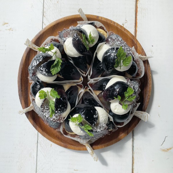種なしで皮ごと食べられる、黒ぶどう特有の甘みがあるナガノパープルを使用した【ナガノパープルのタルトデコレーション】