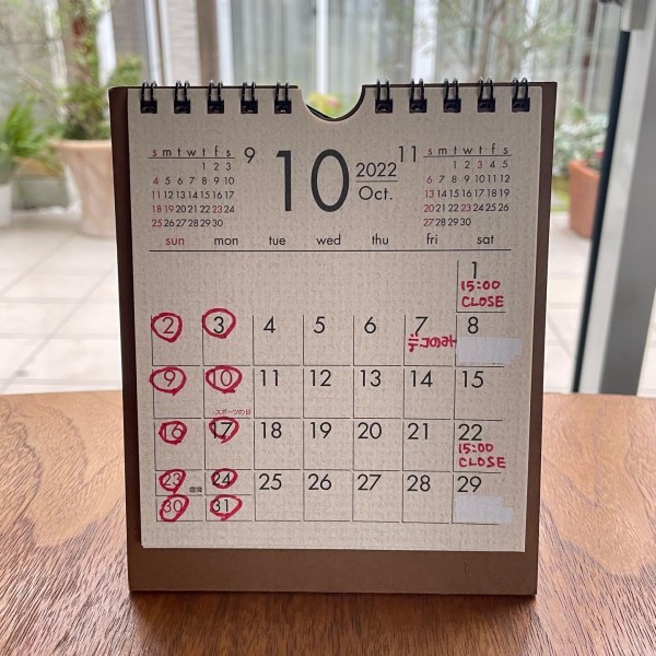 遅くなりましたが、10月の営業日のお知らせです‼︎