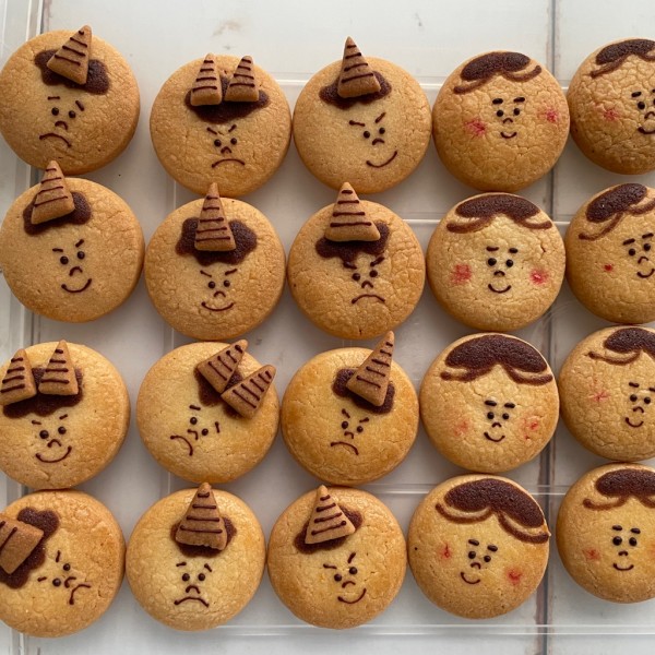きなこ風味の生地に香ばしく焼いたスライスアーモンドを混ぜ入れて焼いた、きなこのブールドネージュ。ホロっと砕ける一口クッキーと、おにさんと福の神さんの可愛いクッキーのセットです。