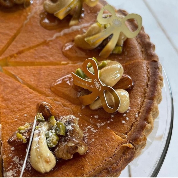 ほんのり塩っけのあるブリゼ生地のタルトを使用し、全体的に甘さ控えめなタルトなので、甘いの苦手な方でも大丈夫です。