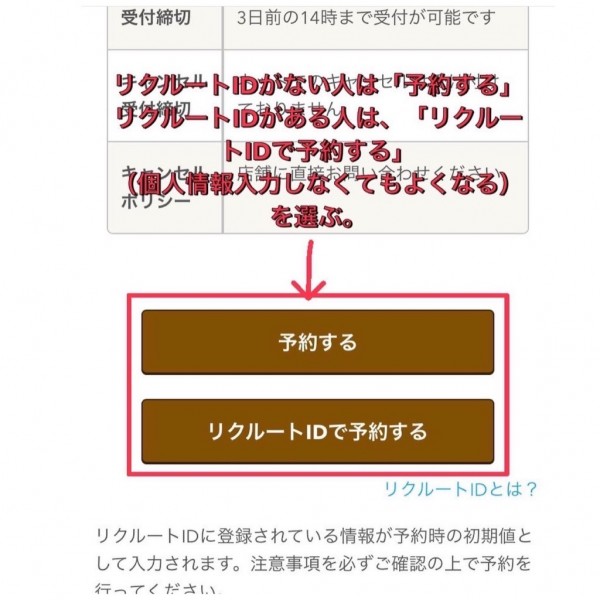 リクルートIDをお持ちの方は、基本情報の入力が省略できますが、お持ちでない方は、お名前やメールアドレスの入力が必要となりますので、ご了承ください。