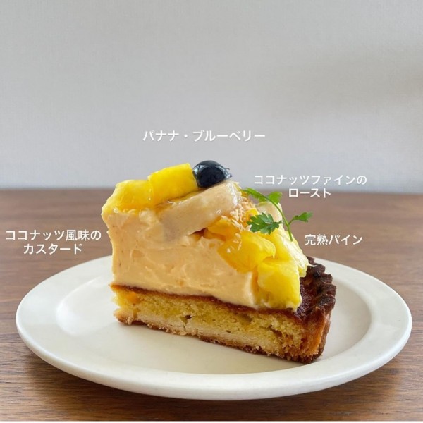 ココナッツ風味のカスタードに、完熟した甘いパイナップル。そして、ローストしたココナッツファインをトッピングでトロピカルな気分♫